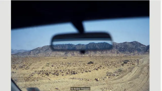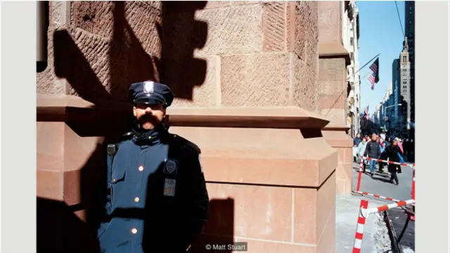 Se na foto de Thijssen uma imagem do retrovisor se torna mais nítida, Matt Stuart usa os erros para dar a um policial um “bigode”.