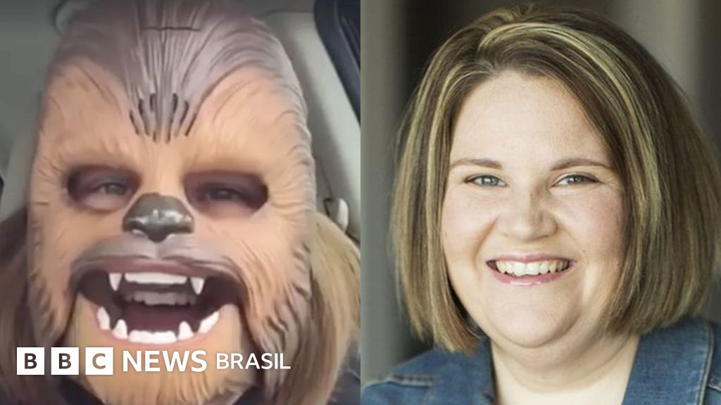 Durante quatro minutos Candace, que tem dois filhos, mostra a máscara e chora de rir depois de colocá-la e descobrir que, quando movimenta a boca, reproduz o inconfundível som que Chewbacca faz.