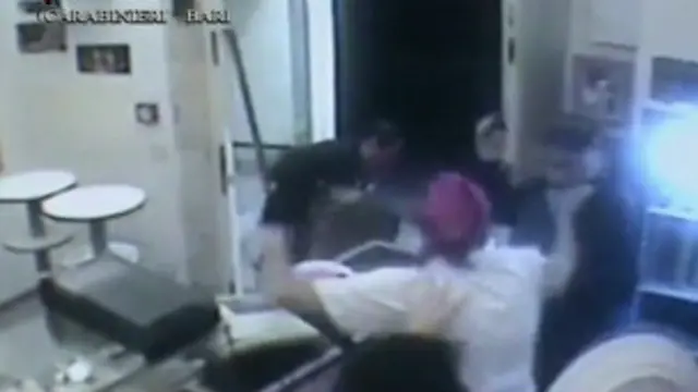 Funcionários de uma pizzaria na Itália reagiram a um assalto e conseguiram enxotar dois ladrões do restaurante atirando pratos na cabeça deles.