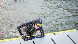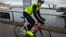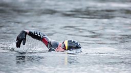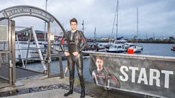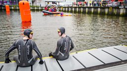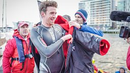 Greg James kicks off his Gregathlon for Sport Relief with a swim in Belfast Harbour.