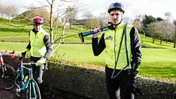 With the puncture fixed, Greg continues his cycle.
