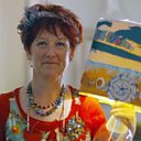 Jane Cuthbert is 55 and lives in the beautiful seaside town of Saltburn in North Yorkshire. She’s an accomplished crafter and musician and runs creative workshops for people with dementia . When she’s not doing that she’s one half of street performance act Jean and Morag (the other half is Terry who is also part of the Yorkshire workshop) Together they dress up as a pair of tea ladies who provide tea, biscuits and good advice to any one passing their teashop tricycle, dressed up in the costumes that Jane makes herself. Jane loves to walk her dog on Saltburn beach and her lampshade is inspired by the colourful banded cliffs she sees every day.