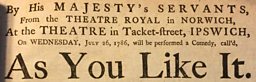 Here the company from the nearby Theatre Royal Norwich are coming to Ipswich with their performance, this would have been a big event for local society.