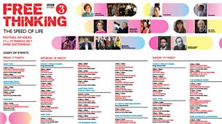 Radio 3 comes live from the Free Thinking Festival 2017 from 17-19 March, with all debates and lectures broadcast over the weeks that follow. This year's festival is devoted to the Speed of Life: browse all programmes, debates and talks via the Free Thinking Festival season page.