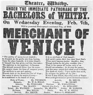 In the North Eastern coastal town of Whitby, an unusual performance of Shakespeare’s Merchant of Venice takes place one evening in 1844. A tale in which finance, wealth and value play a strong part, it may have struck a chord in a town where hundreds of people relied on 'Whitby jet' and the jewellery industry for a living. And it’s a night intriguingly sponsored by 'The Bachelors of Whitby'!