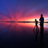 Eyelashes of pink flood the sky, centred from an iris below the horizon. They are mirrored flawlessly in the still water below, one long last blink before nightfall. The wing folds of migrating birds ease in darkening roost sites, and the bell of a distant train is absorbed into the desert.