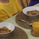 Sgap am measgachadh coirce air muin seo agus crath an siùcar demeràra thairis air.