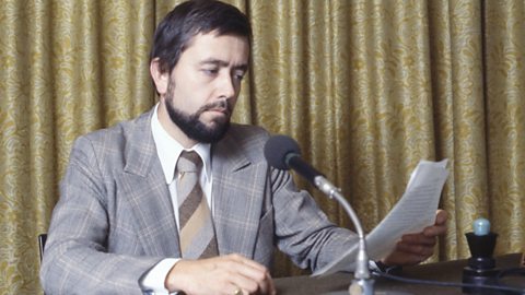 Neil Sleat reads a cutting from the Waltham Forest Guardian on Miles' first show as host.