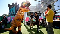 Paul Merton, Janey Godley, Nish Kumar, Marcus Brigstocke, Fred MacAulay and Pippa Evans were Nicholas Parsons' guests for two special episodes of Radio 4's Just a Minute, recorded live in our big Blue Tent.