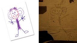 Down in the basement Tony finds an image on the wall that is all too familiar: 'Daddy Big Ears'. This is Ollie's depiction of Tony, and it’s a picture that he draws in the car when the family first arrive in France. Oliver calls it "Daddy Big Ears".