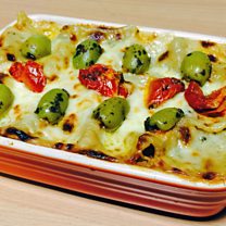 Coginiwch am ryw hanner awr, 200C nes bod y pasta yn feddal.