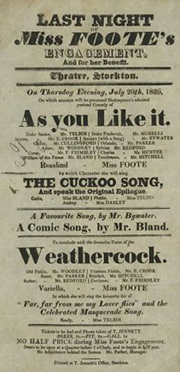 These theatres included Alnwick, Stockton, Sunderland and North Shields, from where he supported the careers of rising stars of the time, many of whom had made their name acting Shakespeare such as his wife, the actress Elizabeth Satchell; Master Betty and Edmund Kean.