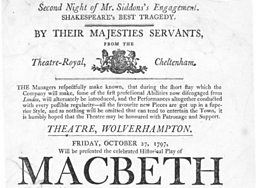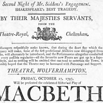 The entertainers on this playbill have travelled to Wolverhampton from Cheltenham’s prestigious Theatre Royal to stage a performance of Macbeth.