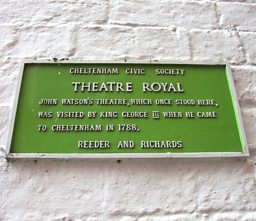 The Theatre Royal there opened in 1782, some 15 years before this performance in Wolverhampton. The Cheltenham Theatre Royal was in York Passage near the High Street and it was visited by King George III and the Royal Family when they visited the town.