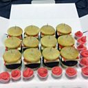 Rhowch y gymysgedd mewn cesys papur, tua 2/3 llawn a'u coginio am 18-20 munud