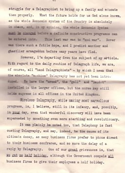 Page 3 of telegraph clerk, Annie K. Lamont's letter from 1921