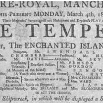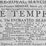 The choice of this play at this particular period in Manchester’s history is interesting too. With its emphasis on monarchy as the natural form of government and royalist ideals it could be seen as preserving the established social hierarchy. Chances were that the audience included members of the emerging middle and working classes as the city was expanding rapidly with the growth of the cotton industry.