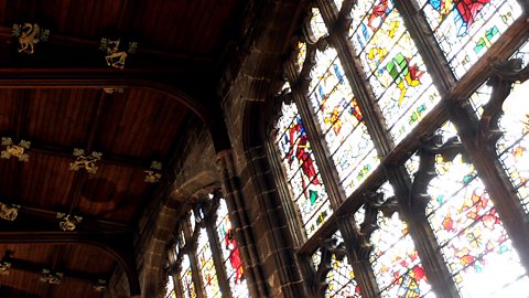 A special feature remains at the high end – a late 15th century tapestry and the stained glass window commemorating Henry VI and his lineage. The tapestry was commissioned by Henry VII to hang in St Mary's Hall as part of a plan to canonize his predecessor who was revered by Coventry in part because he had granted the city special status as a county. Probably Flemish in design and weave, it represents the Assumption of the Virgin with the apostles and kneeling figures of Henry VI and his Queen.
