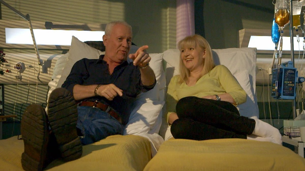 Cathy Shipton (Duffy) and Derek Thompson (Charlie) are set hop onto the medical beds this Saturday from 6pm for a BBC iPlayer exclusive - "Back to Ours". They'll relive classic stunts, emotional storylines and and encounters with future Hollywood stars, as they celebrate 30 years of the hit BBC One medical drama.