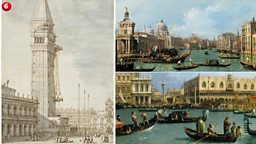 Canaletto - The Campanile under repair c.1745 / Canaletto - The Mouth of the Grand Canal looking West towards the Caritá c. 1729-30 / detail from Canaletto - The Bacino di San Marco on Ascension Day c.1733–4