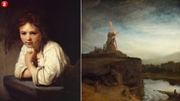 Left - Rembrandt van Rijn, Girl at a Window, 1645, Collection: Dulwich Picture Library, London / Right - Rembrandt van Rijn, The Mill, 1645/1648, Collection: National Gallery of Art, Washington, USA