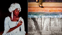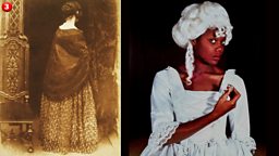 Left:- Robert Adamson, David Octavius Hill- Unknown woman, 1840s / Right:- Maud Sulter, Terpsichore, 1989 © Maud Sulter / The Estate of Maud Sulter, Photo: Street Level Photoworks