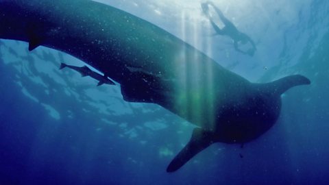 A group of 800 whale sharks and 300 manta rays gather together off the Yucatan in Mexico.