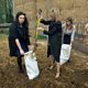 Cows watch on as the girls pick up manure