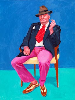 However this isn’t just a parade of VIPs. Alongside stars like Barry Humphries (resplendent in fedora, spotted kipper tie and pink trousers) are portraits of Hockney’s housekeeper, his masseur and the man who comes to wash his car.