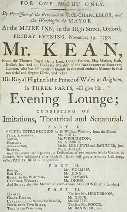 “This is really interesting as it cannot be Edmund Kean. Not only because it's too early, but because he would not have performed this sort of night - imitations of well-known performers. That just wasn't his thing - he had a very distinct performance style.”