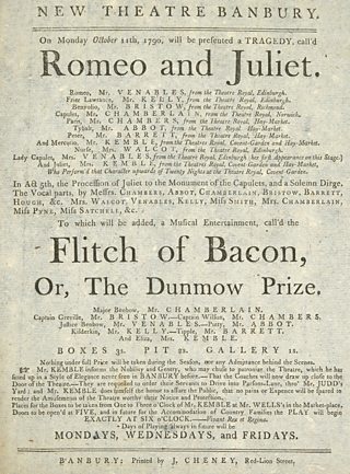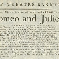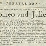 On Monday 11th October 1790, audiences were treated to Romeo and Juliet in a lovely new theatre. Kemble has assembled something of an all-star cast for this production and wants Banbury to know it, as each actor has a prestigious theatre attached to their name on the playbill.