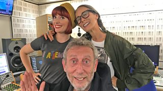 Michael Rosen discusses slogan T-shirts with Amber Butchart and Caryn Franklin.