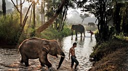 Elephants and their mahouts in Thailand