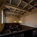 The paint has cracked off the walls, and a dank echo follows your footsteps. As beautiful wooden doors creak open, the coroner’s court reveals itself.