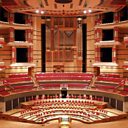 Notwithstanding the extensive use of wood in the auditorium, halls that are perfect for music are not necessarily ideal for speech or other uses. Birmingham’s acoustics can therefore be altered by means of a reverberation chamber – a 12,700 cubic metre void equivalent to about 50% of the volume of the Hall is exposed by a series of huge, concrete doors which can be adjusted to create the required degree of "echo". An acoustic canopy suspended above the stage can be lowered to about 10 metres above the platform, effectively creating a smaller space to focus the sound of a small number of players or speakers. Photo Mike Gutteridge courtesy THSH Birmingham.