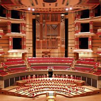 Its acoustics were designed by Artec Consultants, New York, the company founded by the late Russell Johnson who also drew up the innovative acoustic design for Symphony Hall in Birmingham – like Birmingham, the Hall is laid out in "shoebox" format and also has Birmingham’s acoustic doors and movable stage canopy.