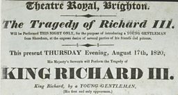 Eight-year-old ‘Master Mangeon’ similarly appeared at the Theatre Royal in Brighton. In late October 1833, the Sussex Advertiser reported that the theatre had engaged Master Mangeon to perform 'on our boards in several favourite tragic characters'. He played a four-night engagement the following month, taking on the roles of Richard III, Shylock and Othello, and was billed as 'the celebrated Master Mangeon, The American Roscius, whose representations in the United States have created the most powerful sensation.'