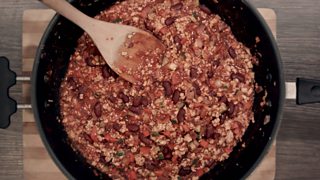 - After aproximately eight minutes, add in a carton or tin of chopped tomato and a sachet of chilli con carne recipe mix.