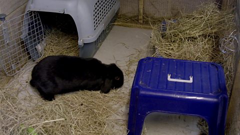 To find out whether solitary life in the hutch was causing Peppa’s stress, we replaced his hutch with an enclosure that was larger and contains features that mimic a rabbit’s natural habitat. These include tunnels where he can feel safe, objects to climb on and hide under and open spaces where he could run, jump and stand up.