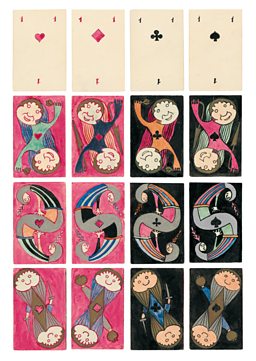 Schoenberg used his skill as a painter to create bespoke sets of playing cards, illustrating one deck in a style reminiscent of Gustav Klimt and the Vienna Secession, and another with a series of comical caricatures depicting grotesquely misshapen heads.