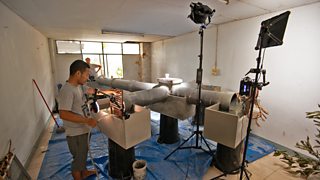 Keen to tell the story of how the water monitors navigate the city we approached the city council to film in the sewers but were told that it would be far too dangerous due to the unsanitary conditions. I would be lying if I didn’t say there was a quite a large sigh of relief from the crew. So in order to showcase how they use the city to their advantage we recreated their underground world in the fire station by building a replica sewer.