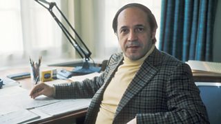 The still is his 1973 BBC publicity shot – frustratingly, no matter how hard I look I can’t make out what the score on his desk is.