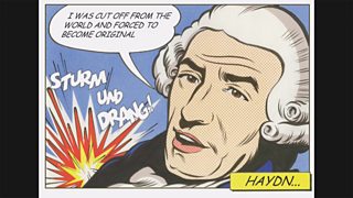 The still is one of four Roy Lichtenstein-style illustrations commissioned for the 2009 BBC series The Birth of British Music and, I think, neatly captures the composer in one comic-book panel.