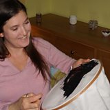 A stitcher who joined a sewing group to meet like-minded people. She's made tea cosies and draught excluders as gifts and hopes to move to dressmaking