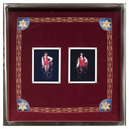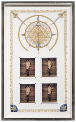 The images are presented in dazzlingly beautiful embellished surrounds and highly worked ornate frames so that they resemble church altarpieces, with intricate embroidery by the famed English company Hand & Lock.