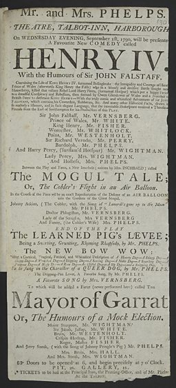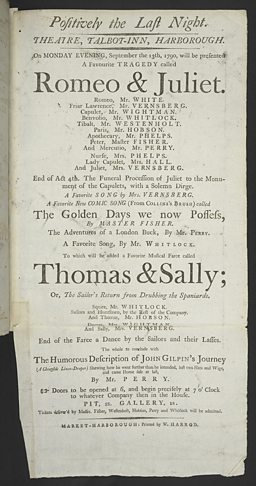 Evidence of these plays happening are captured by a member of the clergy from the period – Reverend Charles Burney – who as a scholar and theatre critic collected the adverts (or playbills) of the plays.