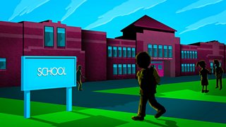 On the first day at his new school, Jamie is befriended by Sam, and harassed by the school bully. Local billionaire Voom Buckstop makes an unwelcome appearance in class.