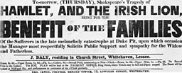 A pit tragedy means that this particular performance of Hamlet in Whitehaven is turned into a benefits night in order to raise money for the families of those miners who have most recently lost their lives. This British Library playbill from the time shows the pain in the community following the 'late melancholy catastrophe' at a local pit, Duke Pit.