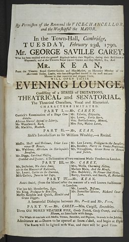 In this particular performance or “Evening Lounge” in 1790, we see advertised a series of ‘imitations’ – or sketches – featuring songs and impressions from the Bard’s plays.