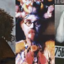 For her Billy portrait she designed, in her own signature style, an uber-kitsch Bonnie Prince Charlie-style outfit referencing several of Billy's most famous jokes, including ‘mini bike parked in bum’ epaulettes.